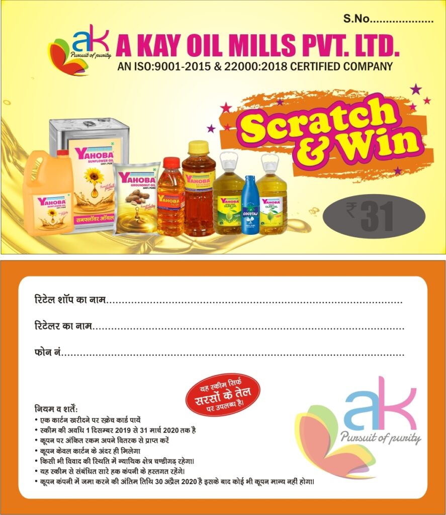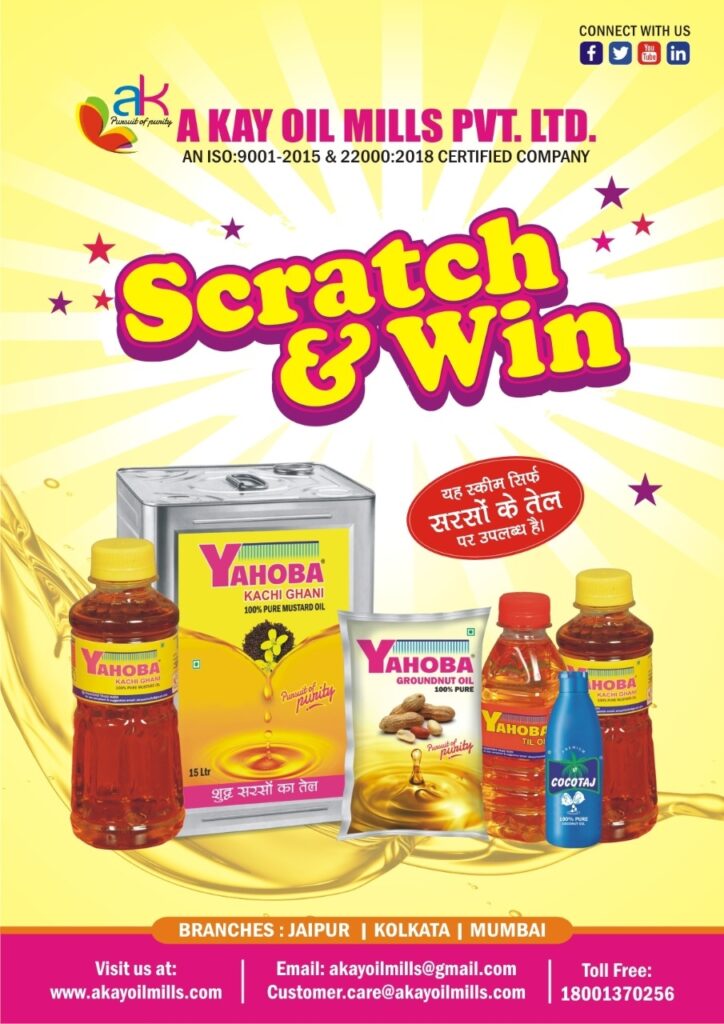 Akay Oil Mills, offers a wide range of cooking oils like Kachi Ghani Mustard Oil ,Refined Sunflower Oil, Groundnut Oil, Palm Oil, Til (Sesame) Oil, Other edible oils.